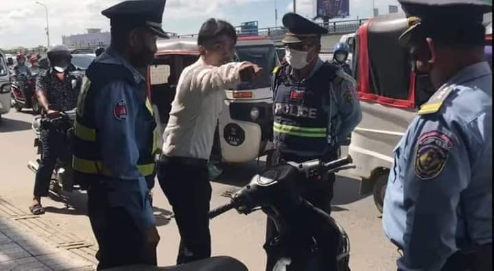 នៃស្នងការដ្ឋាននគរបាលរាជធានីភ្នំពេញ ចុះអនុវត្តន៍ច្បាប់ចរាចរណ៍ជើងគោកនៅចំនុចក្រោមស្ពានអាកាសស្ទឹងមានជ័យដូចសព្វរាល់ដងតាមការណែនាំរបស់ស្នងការនគរបាលរាជធានីភ្នំពេញ ខណ:ពេលកំពុងតែអនុវត្តន៍ច្បាប់ចរាចរណ៍ស្រាប់តែបុរសខាងលើជិះម៉ូតូស្មាស់រីវ៉ូពណ៍ណាខ្មៅមួយគ្រឿងពាក់ផ្លាកលេខ ភ្នំពេញ1-BG 5792ធ្វើដំាណើរពីទិសដៅពីកើតទៅលិចបំរុងនិងបត់ស្តាំពេលឃើញកម្លាំងសមត្ថកិច្ចស្រាប់តែបុរសជើងខ្លាំងខាងលើបានបត់ត្រលប់ក្រោយនិងជិះបញ្រ្ចាសទិសបណ្តាលដួលម៉ូតូតែមិនបណ្តាលឲ្យរងរបួសនោះទេ ពេលនោះកម្លាំងសមត្ថកិច្ចបានដើរទៅសួរនាំស្រាប់តែបុរសជើងខ្លាំងខាងលើស្ទុះដេញដាល់សមត្ថកិច្ចនិងគម្រាមដកស័ក្កចោលទៀតផង។