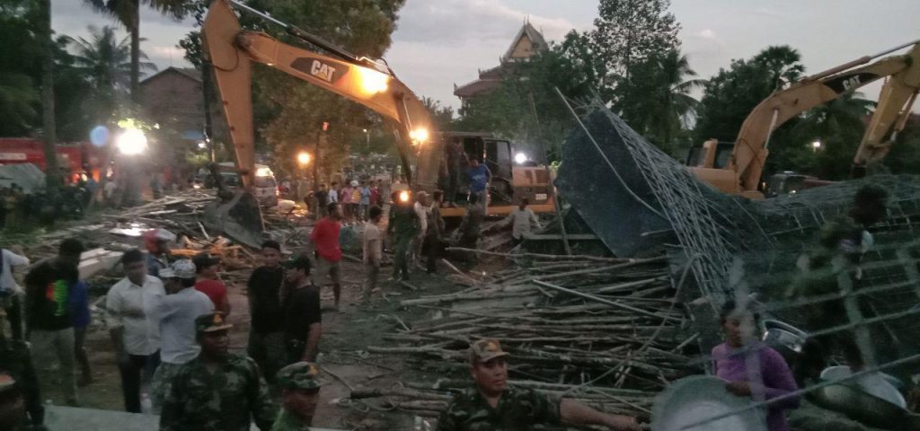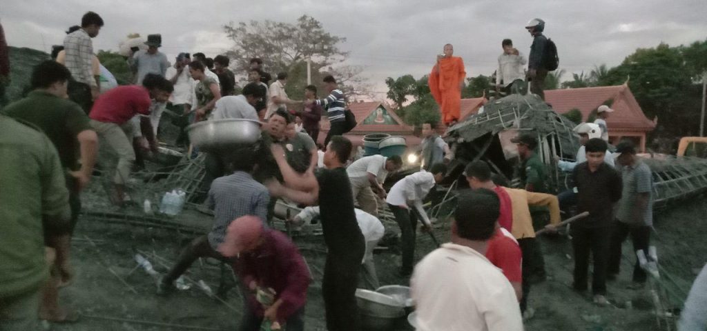 សូមជម្រាបថា នៅវេលាម៉ោងប្រមាណ ៣រសៀលថ្ងៃទី០២ ខែធ្នូ ឆ្នាំ២០១៩នេះ មានហេតុការណ៍បាក់ស្រុតសាលាឆាន់កម្ពស់៨ម៉ែត្រ ទំហំ៣០ម៉ែត្រ គុណ២០ម៉ែត្រដែលកំពុងសាងសង់ នៅវត្តប្រាសាទគោកចក ស្ថិតក្នុងសង្កាត់គោកចក ក្រុងសៀមរាប ខេត្តសៀមរាប បណ្ដាលឲ្យសង្កត់មនុស្ស២០នាក់។