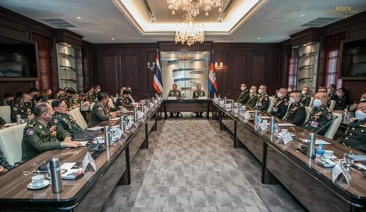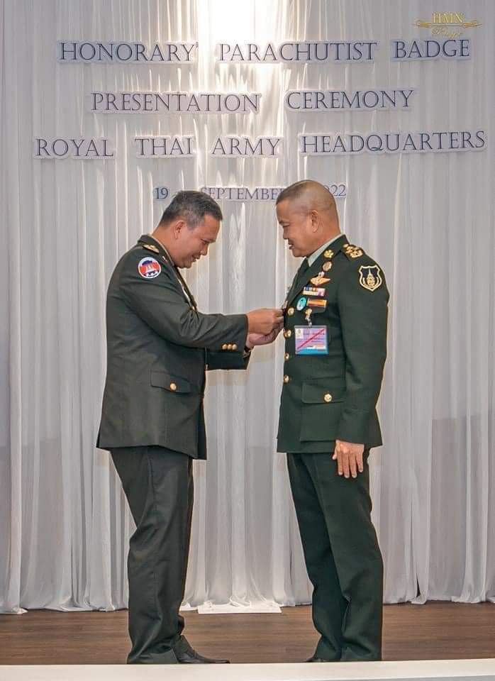 នារសៀលថ្ងៃទី១៩ ខែកញ្ញា ឆ្នាំ២០២២ នៅបញ្ជាការដ្ឋានកងទ័ពជើងគោក នៃកងភូមិន្ទថៃ ឯកឧត្តម ឧត្តមសេនីយ៍ឯក ហ៊ុន ម៉ាណែត អគ្គមេបញ្ជាការរង នៃកងយោធពលខេមរភូមិន្ទ មេបញ្ជាការកងទ័ពជើងគោក បានជួបប្រជុំពិភាក្សាការងារទ្វេភាគីជាមួយនឹង ឯកឧត្តម នាយឧត្តមសេនីយ៍ ណារ៉ុងផាន់ ជិតកែវធែ (Narongpan Jitkaewtae) មេបញ្ជាការកងទ័ពជើងគោកនៃកងភូមិន្ទថៃ ក្នុងឱកាសនៃដំណើរបំពេញទស្សនកិច្ចផ្លូវការលើកទី២ របស់គណៈប្រតិភូជាន់ខ្ពស់កងទ័ពជើងគោក នៃកងយោធពលខេមរភូមិន្ទ នៅព្រះរាជាណាចក្រថៃ តបតាមការអញ្ជើញរបស់សមភាគីមិត្ត។
