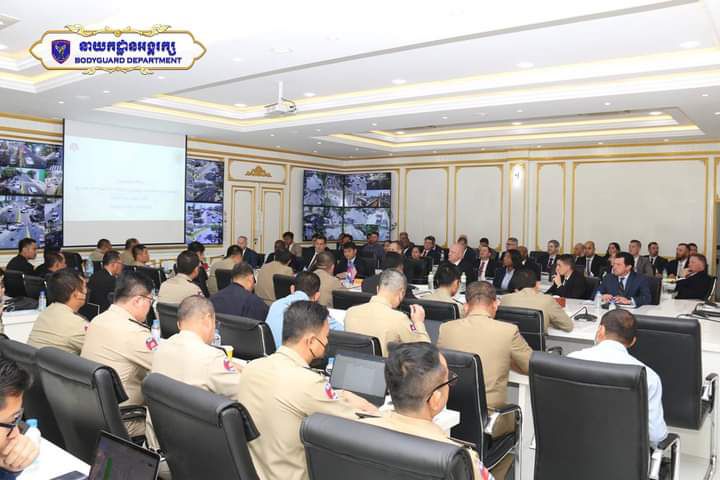ក្រោមអធិបតីភាព ឯកឧត្តម ឧត្តមសេនីយ៍ឯក ឆាយ គឹមខឿន អគ្គស្នងការរងនគរបាលជាតិ ឯកឧត្តម ឧត្តមសេនីយ៍ឯក ឌី វិជ្ជា អគ្គស្នងការរងនគរបាលជាតិ និងជាប្រធាននាយកដ្ឋានកណ្តាលសន្តិសុខ និងឯកឧត្តម ឧត្តមសេនីយ៍ឯក យឹម លាង អគ្គស្នងការរងនគរបាលជាតិ ទទួលផែននាយកដ្ឋានអង្គរក្ស ព្រមទាំងថ្នាក់ដឹកនាំតាមបណ្តាស្ថាប័នជំនាញពាក់ព័ន្ធ បានជួបពិភាក្សាការងារសន្តិសុខ ជាមួយគណៈប្រតិភូសន្តិសុខជួរមុខរបស់សហរដ្ឋអាមេរិក ដឹកនាំដោយលោក Willian “Allen” Lowe ប្រធានក្រុមនាំមុខ និងសហការីចំនួន ៤៦ រូប ។ កិច្ចជំនួប បានពិភាក្សាអំពីផែនការការពារសន្តិសុខ និងសណ្តាប់ធ្នាប់ក្នុងឱកាសកិច្ចប្រជុំកំពូលអាស៊ានលើកទី៤០-៤១ និងកិច្ចប្រជុំកំពូលពាក់ព័ន្ធនានា ឆ្នាំ២០២២ នាពេលខាងមុខ ដែលរៀបចំឡើងនៅព្រះរាជាណាចក្រកម្ពុជា ។
