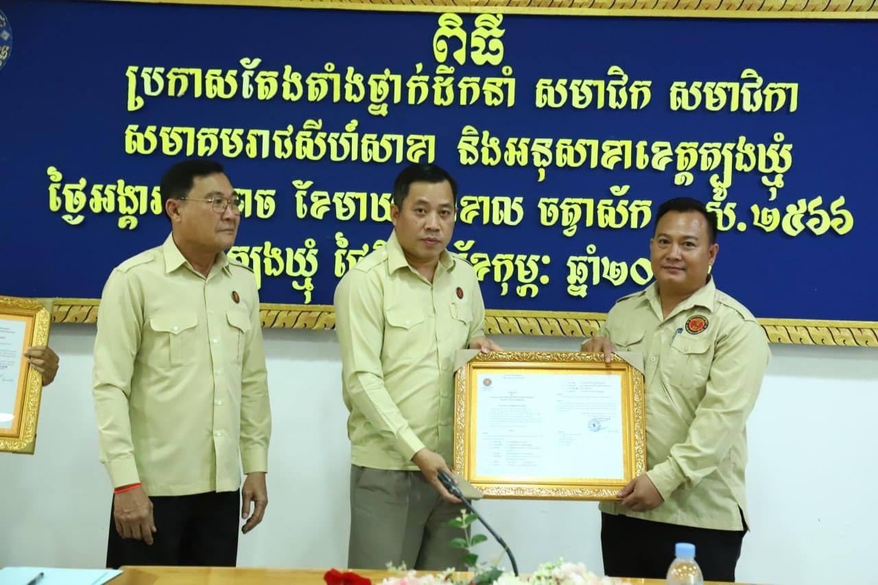 ឯកឧត្តម អ៊ុង សារ៉ាវ៉ាន់ អនុប្រធានអចិន្ត្រៃយ៍សមាគមរាជសីហ៍ បានអានសេចក្តីសម្រេចតែងតាំងថ្នាក់ដឹកនាំ និងសមាជិក សមាជិកា សមាគមរាជសីហ៍សាខាខេត្តត្បូងឃ្មុំ ដែលមាន លោក ធី ម៉ានី ជាប្រធានសមាគមរាជសីហ៍សាខាខេត្តត្បូងឃ្មុំ និង លោក កេង ប៊ុនណា ជាប្រធានកិត្តិយស ព្រមទាំងថ្នាក់ដឹកនាំ និងសមាជិក សមាជិកា សមាគមរាជសីហ៍សាខាខេត្តត្បូងឃ្មុំ ៣១៤អង្គ/នាក់។