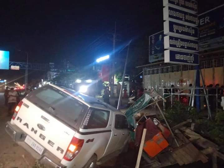 ភ្នំពេញ÷បុរសជនជាតិចិនម្នាក់ស្រវឹងជោកជាំបើករថយន្តក្នុងល្បឿនលឿនជ្រុលទៅបុករះទូទឹកកកនិងទូបារីរបស់ប្រជាពលរដ្ឋហើយថែមទាំងបង្កបុកបង្គោលភ្លើងមួយដើមទៀតដែលនៅជាប់នឹងចិញ្ចឹមផ្លូវបាក់រាបដល់ដីរងការគួរខាតយ៉ាងដំណំ។